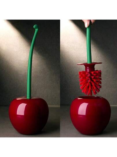 1pc Giant Cherry Toilet Brush And Holder Set In Cherry & Apple Shape For Household Cleaning - Red - View 1