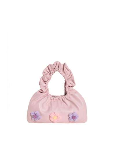1pc Girls' Floral Pu Cloud-Shaped Pleated Cute Handbag, Suitable For Vacation, Daily Use - Pink - View 3