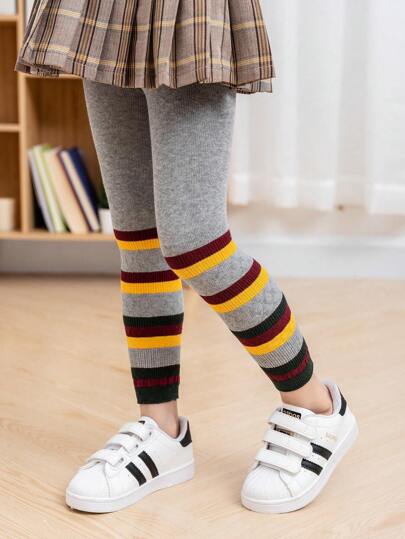 1pc Girls' Korean Style Contrast Color Leggings For Outfit - Grey - View 1