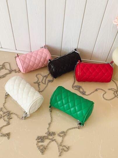 1pc Girls' Solid Color Diamond Quilted Embroidery PU Zipper Closure Simple Crossbody Bag, Suitable For Daily Use All Seasons - Pink - View 13