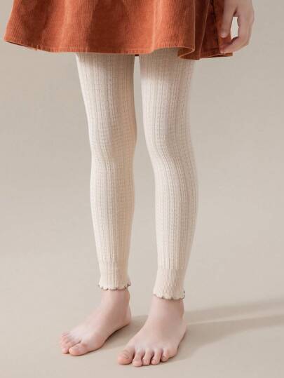 1pc Girls' Thin Leggings For Spring And Autumn, Children Cropped Pants For Outerwear - Khaki - View 4