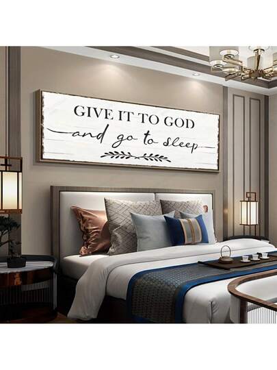 1pc Gives It To God Without A Frame, And Then Goes To Sleep. Big Banner Wall Art Decoration Diamond Painting, Retro Oil Painting In Master Room, Quotation Poster Home Decoration. - Black and White - View 1