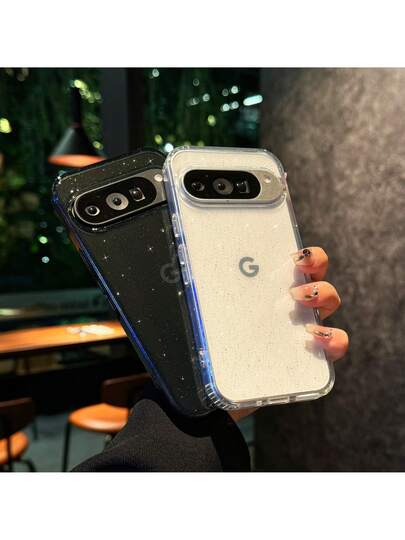 1pc Glitter & Rhinestone Decor Slim Transparent Shiny Phone Case, 2.2mm Thick, Protective Cover Compatible With Pixel 10 Pro XL, Pixel 9 Pro, 9A/8 Pro Phones, Unisex - Clear - View 1
