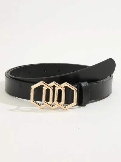 1pc Hexagon Buckle Fashion Viral Women's Leather Belt, Suitable For Dresses, Coats, Jeans, Casual Pants, Various Parties And Leisure Occasions - Black - View 1