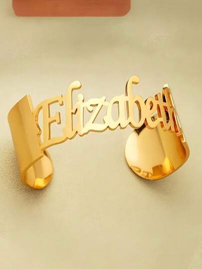 1pc Gold Gold Rose Gold Elizabeth Custom Name Bracelet - Elegant Bohemian Iron Gold Plated, Personalised Letter-Carving, No Inlay, Perfect For Everyday And Party Wear - The Ideal Gift For Friends Thanksgiving Christmas,New Year Glamour - Multicolor - View 1