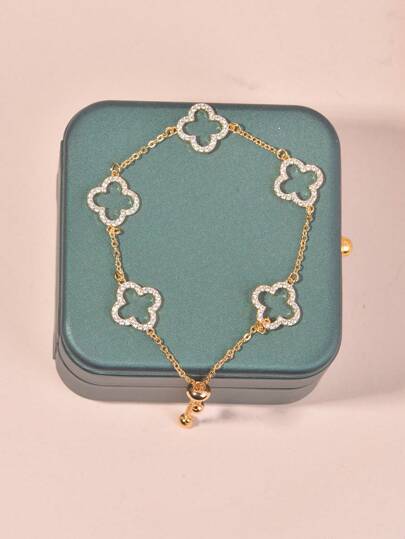 1pc Gold-Plated Charm Bracelet With Hollow Geometric Design, Adjustable For Dating, Wedding, Music Festival, Halloween, Christmas, Outdoor Activities - Clover - View 2
