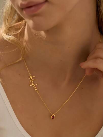 1pc Gold Silver Rose Gold Custom Custom Name Necklace With Birthstone, Birthstone Necklace, Side Name Necklace, Gift For Her Birthday Gift For Her Mother's Day Gift Christmas Gift For Mom Gift - Multicolor - View 1