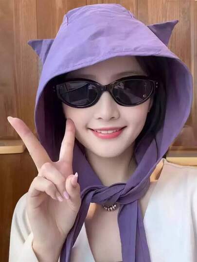 1pc Gothic Little Demon Hooded Hat With Drawstring, Quick-Drying UV-Resistant Sun Hat, Ear-Covering Headband, Cat Ear Design For Women, Lightweight - Multicolor - View 1