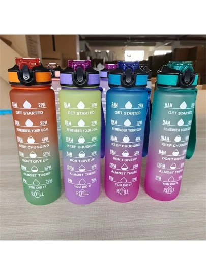 1pc Gradient Sports Water Bottle - 32oz Leakproof Inspirational Time Marker Bottle With Straw, Suitable For Outdoor Sports, Hiking, Camping, And Traveling - Bpa-free, Easy To Carry And Clean - Blue - View 1