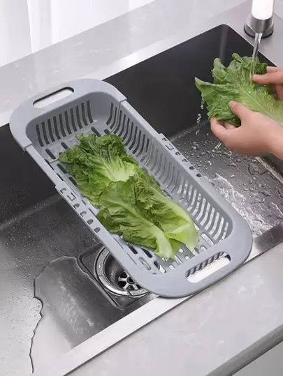 1pc Grey Vegetable Draining Rack, PP Flexible Sink Draining Rack For Kitchen - Grey - View 1