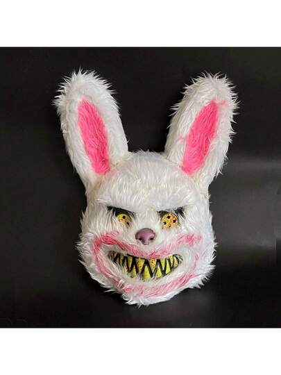 1pc Halloween Horror Rabbit Mask, Plush Rabbit Face Mask For Nightclub Party Decoration - White - View 1