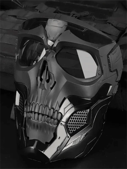 1pc Halloween Skull Bearers Mask Glass Fiber Nylon Impact Resistance Airsoft Paintball Combat Game Fits For FAST Helmet - Black - View 1