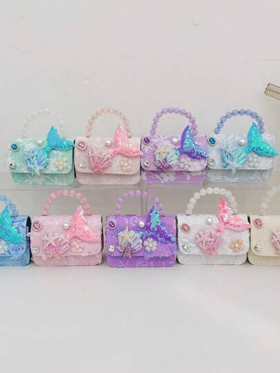 1pc Handbag, Lace Flower Beaded Bag, PU Sequin Mini Bag, Girls Shoulder Bag, Cute Fish Decor Pouch, Accessory Snap Closure Coin Purse, Suitable For Kids Travel, Shopping, Fashion Outfit, Coin Purse Storage - Children's Pearl Bag - View 21