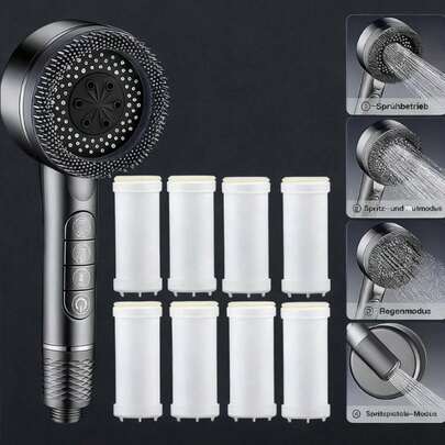 1pc Handheld Pressurized Piano Key Shower Head With 8pcs Filter Cotton, High Pressure Spray, Easy Installation, No Electricity Required, Suitable For Home, Bathroom, Hotel - Gray-1pc - View 1
