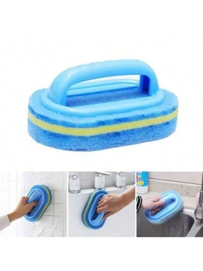 1pc Handle Sponge Cleaning Brush For Kitchen Cleaning, Pot Cleaning And Sponge Magic Eraser Brush For Tile Cleaning - Blue - View 1