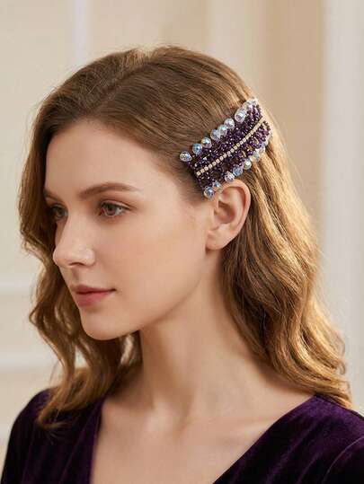 1pc Handmade Crystal Hair Clip, Elegant Princess Style Beaded Spring Clamp Headpiece, Suitable For Bride, Wedding, Celebration, Carnival, Party, Casual Wear - Multicolor - View 1