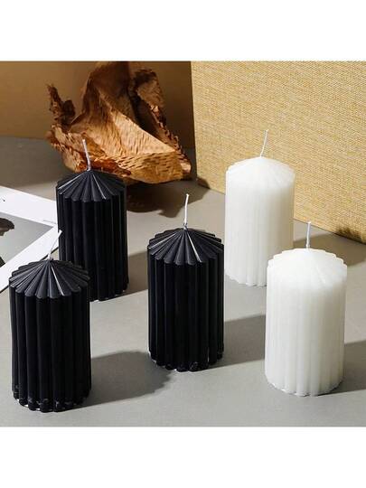 1pc Handmade Striped Pillar Scented Candle Decor With Minor Color Difference,Room Decor,Gifts - Multicolor - View 5
