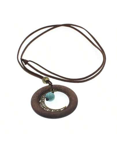 1pc Handmade Vintage Moon & Leaf Design Long Necklace, Suitable For Men & Women, Daily Wear, Festival Gift - Brown - View 1