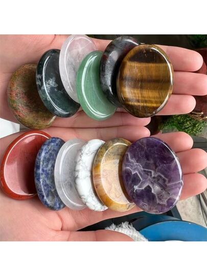 1pc Healing Crystal Oval Thumb Worry Stone Pocket Palm Gemstones For Anxiety Therapy Geometry Chakra Reiki Balancing E With Healing & Calming Effects - High Energy Satin Spar Love Palm Stone Used For Cleansing And Protection - Multicolor - View 1