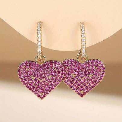 1 đôi bông tai hình trái tim dành cho nữ, kiểu dáng thanh lịch, sáng bóng, trang sức đeo hàng ngày, đi nghỉ mát, dự tiệc, quà tặng ngày Valentine.