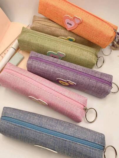 1pc Heart Patch Decor Random Pencil Bag,Back To School,School Supplies - Multicolor - View 1