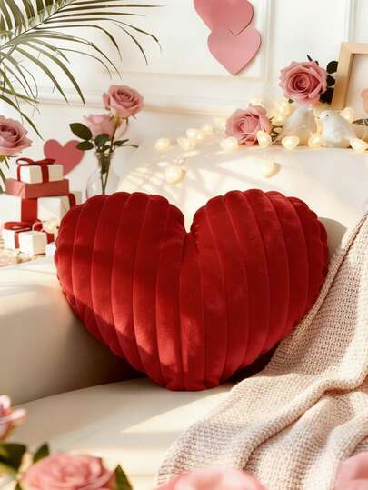 1pc Heart Shaped Ruched Velvet Throw Pillow, Luxurious Multi-Color Ruched Cushion, Soft & Comfortable With Back Support, Elegant Home Decor For Living Room Sofa Bedroom, Romantic Anniversary/Valentine's Day Gift For Girlfriend/Wife - Multicolor - View 1