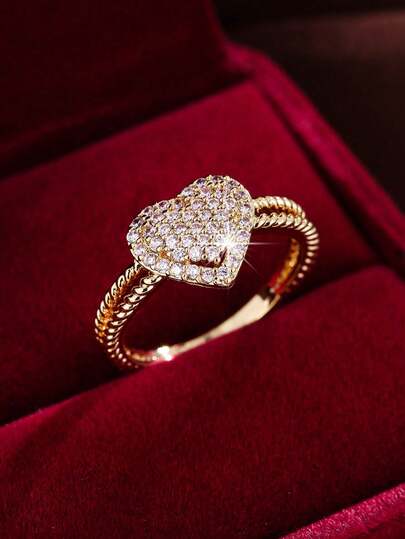 1pc Heart Zirconia Stone Romantic Ring, Valentine's Day Gift - Yellow Gold - View 1