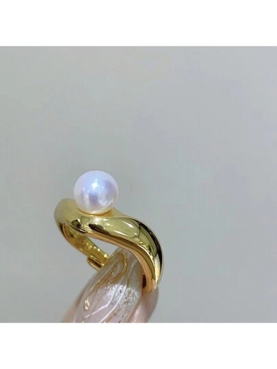 1pc High-End Stylish Natural Akoya Pearl Ring With S925 Sterling Silver Adjustable Band For Women's Daily Or Festival Wear - White - View 1