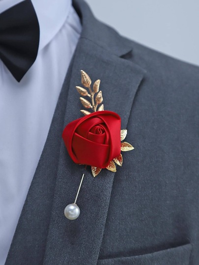 1pc High-Grade Rose Bud With Metal Accessory Chest Flower For Wedding Or Party Valentine's Day Valentines - Red - View 1