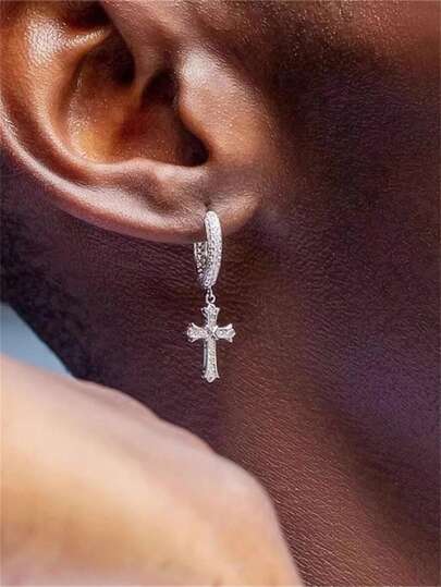 1pc Hip Hop Rhinestone Cross Pendant Earring - Multicolor - View 1