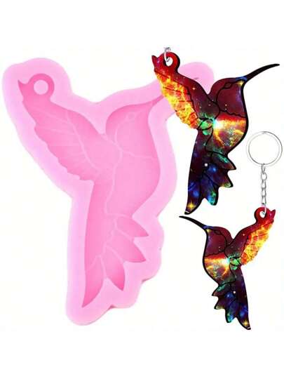 1pc Hummingbird Silicone Mold For Glossy Resin Crafts - Perfect For Keychains, Pendants, And Jewelry Making - Pink - View 1