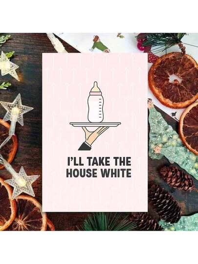1pc Humorous Wine Greeting Card With Envelope - "I'll Take The House White" Design, Bottle-On-Tray Art, Perfect For Wine Lovers & Friends, Ideal For Dinner Parties & Celebrations, Alcohol Themed Card|Funny Greeting Card|Paper Greeting Card, Wine Gift Accessories - Multicolor - View 1