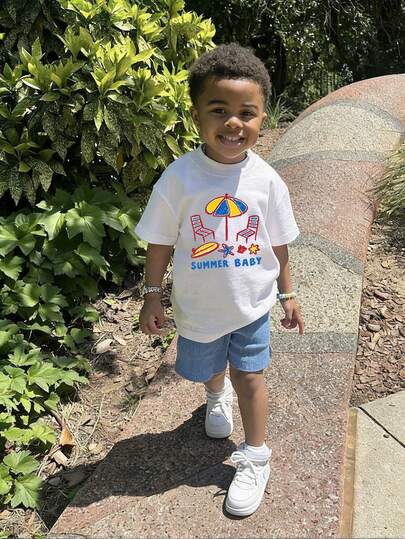 1pc Infant/Toddler Boys' Creative Cartoon Graphic Letter Slogan Print Basic Round Neck Short Sleeve T-Shirt, Casual & Fashionable - White - View 5