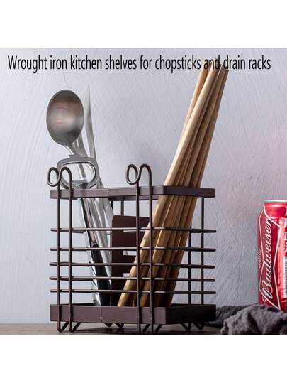 1pc Iron Art Kitchen Utensil Holder & Chopstick Drainer Rack - Multicolor - View 1