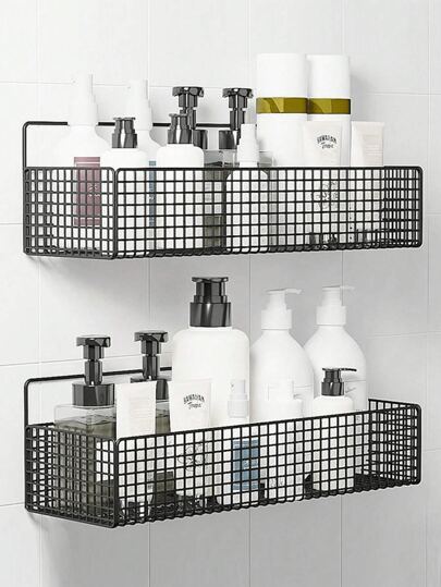 1pc Iron Bathroom Storage Rack, Non Perforated Wall Mounted Storage Rack, Bathroom Shelf Organizer Home Bathroom Decor Fall Decor Bathroom Accessories Back To School - Multicolor - View 1
