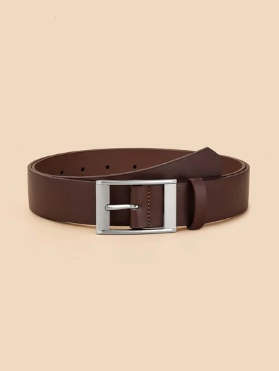 1pc Kids Solid PU Leather Square Buckle Belt For Daily Life - Coffee Brown - View 1