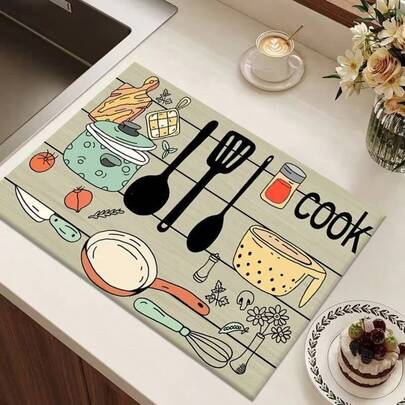 1pc Kitchen Pattern Draining Mat, Coffee Maker Drip Tray, Dish Drying Mat, Placemat, Kitchen Supplies - Multicolor - View 1