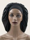 Awegeo 1pc Plus Size Women Solid Color Wide Brim Elastic Satin Bonnet Hat, Soft & Breathable Casual Comfortable Sleeping Cap, Not Easy To Slip Off, Suitable For Sleep & Everyday Use Hair Care Hat