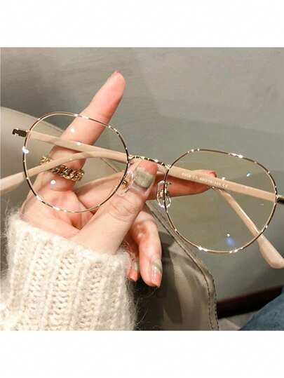 1pc Ladies High Appearance Level Student Round Face Display Face Flat Non-Prescription Glasses Plain Frame For Computer Reading Gaming TV Phones - Multicolor - View 1
