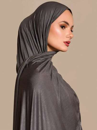 1pc Ladies" New Large Size Hijab Headscarf Soft Scarf Solid Color Turban For Casual Wear Headband Abaya Accessories Veiled Clothes - Dark Grey - View 4