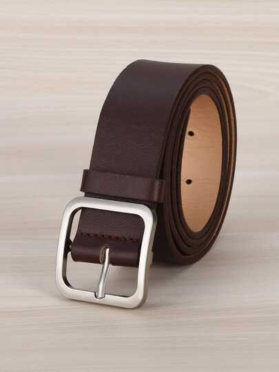 1pc Lady's Coffee-Colored Square Buckle Pu Fashionable Belt Suitable For Daily Wear Summer, School Fall, Autumn, Halloween - Coffee Brown - View 1
