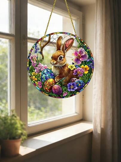 1pc - Large 2D Flat Easter Bunny With Floral Sunlight Catcher Wall Decor - 2D Flat Acrylic Window Decoration, Featuring Spring Flowers, Suitable For Easter Parties, Spring And Gifts, Easy To Hang Bunny Shape, 2D Flat - Multicolor - View 7