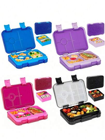 1pc Large Capacity Divided Bento Box Set, Cute Glitter Design With Mini Container, Suitable For Microwave Heating And Outdoor Dining - Multicolor - View 1