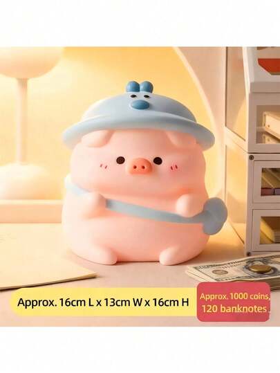 1pc Large Size Cute & Attractive Piggy Bank, Available In Yellow Or Blue, Made Of ABS Resin, Reusable For Holiday Decor, Home Decoration, Room Decor, New Year Decoration, Ideal Gift For Friends - Multicolor - View 1