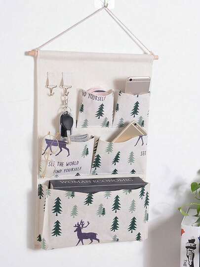 1pc Linen Fabric Storage Bag With 5 Pockets And Dual Hooks, Suitable For Bathroom, Dorm, Over-The-Door Hanging, Wardrobe Wall Mounted Storage Organizer - Multicolor - View 1