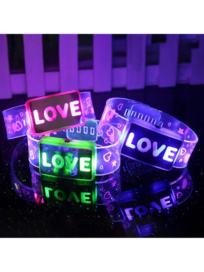 1pc Love Printed Led Flashing Wristband For Valentine's Day - Pink - View 7