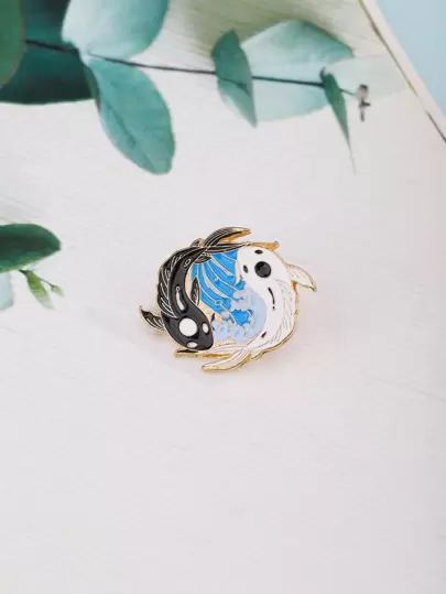 1pc Lovely Animals Gathered In A Yin Yang Pattern, Creative Black & White Fish Brooch - Black and White - View 1