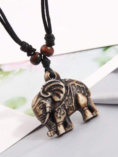1pc Lucky Elephant Necklace, Elegant Personalized Accessory For Women - Coffee Brown - View 1