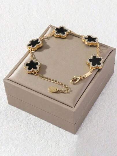 1pc Lucky Five-Petal Flower Decor Elegant Women Chain Bracelet (No Gift Box), Gift For Valentine's Day, Mother's Day - Multicolor - View 1