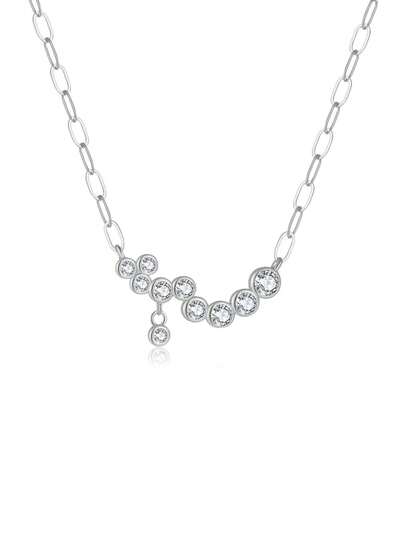 1pc Luxurious Fashionable 925 Sterling Silver Asymmetrical Cubic Zirconia Pendant Long Chain Necklace For Women, Perfect For Parties, Birthday Or Valentine's Day Gift - Silver - View 1